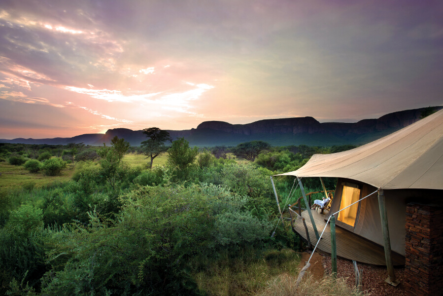 El Marataba Safari Lodge te espera con sus tiendas de decoración elegante, hechas con piedra y tela. Se encuentra en el Parque Nacional Marakele, situado a los pies de las Montañas Waterberg. Este precioso lodge ofrece safaris guiados para ver a la fauna salvaje, rutas de senderismo y excursiones al río. Podrás disfrutar de comidas al aire libre bajo una acacia africana, o relajarte en sus tumbonas junto a la piscina, e incluso disfrutar de un buen libro en su amplio salón con chimenea.