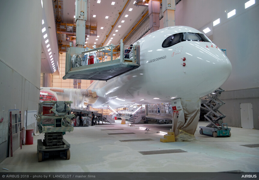 Como homenaje al tenor español y madrileño más universal. El primer A350 de Iberia ya encara la recta final de su montaje.