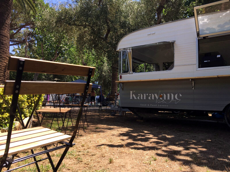 La incorporación gastronómica más reciente ha sido una caravana vintage del año 1966, rebautizada con el nombre de Karavane Bar Sand & Food Lovers. Un nuevo concepto de Street Food para el camping que se ha convertido en uno de los principales reclamos de sus visitantes, pues su diseño clásico, aire retro y su céntrica ubicación la convierten en una parada obligatoria.