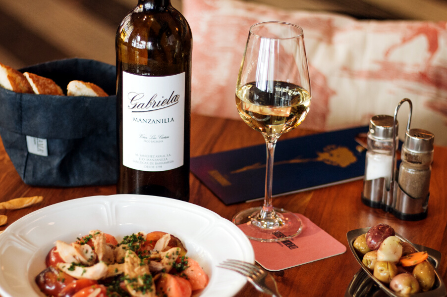 Con Denominación de Origen en sí misma se puede disfrutar de ella en la barra costumbrista del local y combinarla con platos como la Ensaladilla con langostinos o un Aliño de papas de la misma Sanlúcar. La tradición se apodera del lugar, puesto que desde 1825 se tiene constancia de este caldo conocido como Manzanilla, que ha servido de inspiración a literarios y ha conseguido traer a Andalucía a más de un aficionado.