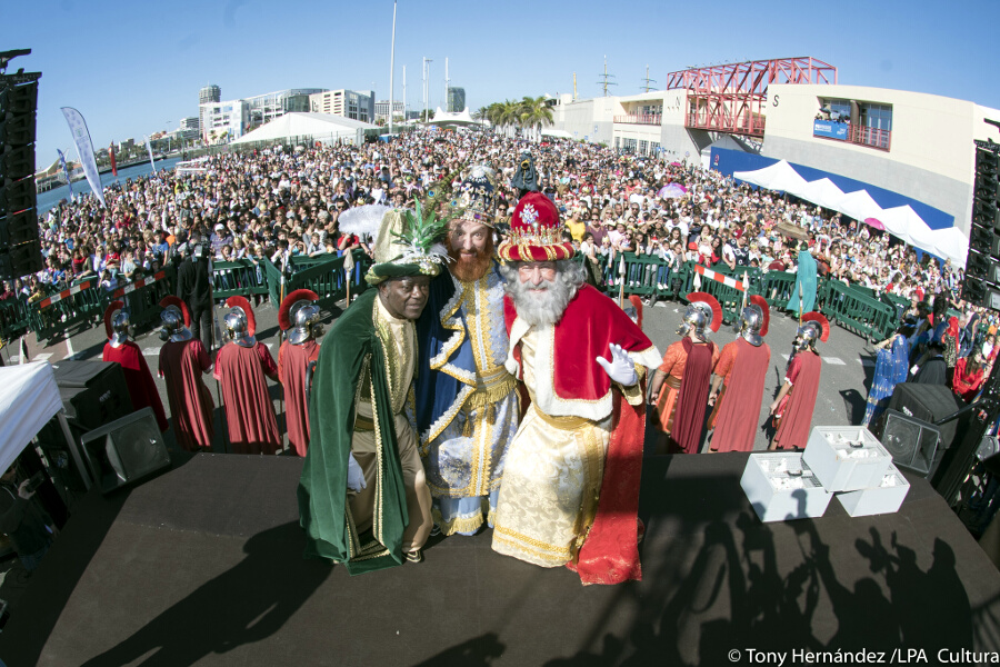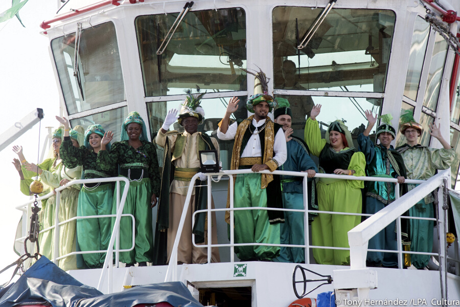 La jornada festiva empieza el sábado 5 de enero a las 11:00 de la mañana en la Base Naval. Allí se concentrará un nutrido grupo de locales y turistas para festejar la llegada de los tres Reyes Magos Oriente que desembarcarán una hora después junto a su numeroso séquito, trayendo - en esta ocasión - un mensaje ecológico. El alcalde, Augusto Hidalgo, les hará entrega de la "Llave de la Ciudad"