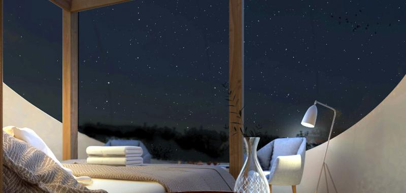 Ofrece en su carta de hoteles dos alojamientos de estas características –ubicados en desierto de Bárdenas Reales (Navarra) y Toledo– y con todo tipo de detalles para una experiencia Premium. Perfectas para contemplar el cielo estrellado al caer la noche, todas las esferas cuentan con cama King Size y también ofrecen a sus huéspedes una desconexión absoluta al estar inmersas en plena naturaleza, con unas vistas privilegiadas.
