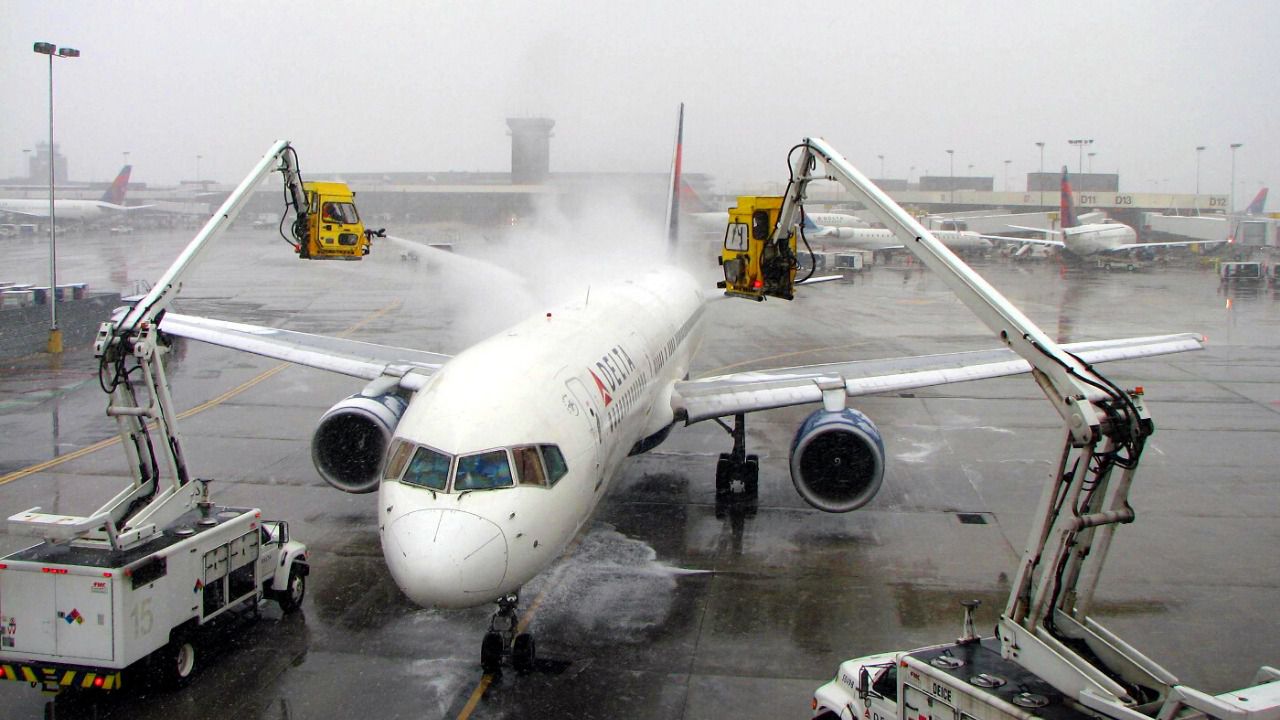 El tipo I de líquido descongelante es una mezcla de un químico llamado propilenglicol, combinado con otros productos químicos, inhibidores y agua. Se calienta entre 71 y 82ºC y se pulveriza bajo presión para eliminar la escarcha, el hielo y la nieve del avión. En la próxima temporada de invierno, cinco aeropuertos o estaciones en las que Delta opera probarán un nuevo líquido de descongelante más respetuoso con el medio ambiente.