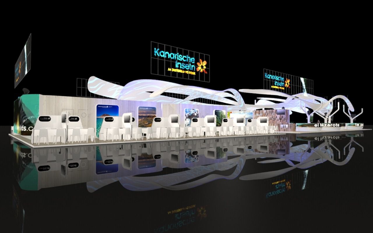 El pabellón que representa a las Islas en la ITB de Berlín pretende atraer al visitante alemán de una forma innovadora e, incluso, emocional. El concepto de buen clima como atributo esencial de la marca Islas Canarias estará presente en todo el stand con juegos cromáticos de iluminación y materiales orgánicos, evocando los colores del océano, la vegetación y las tierras de origen volcánico.